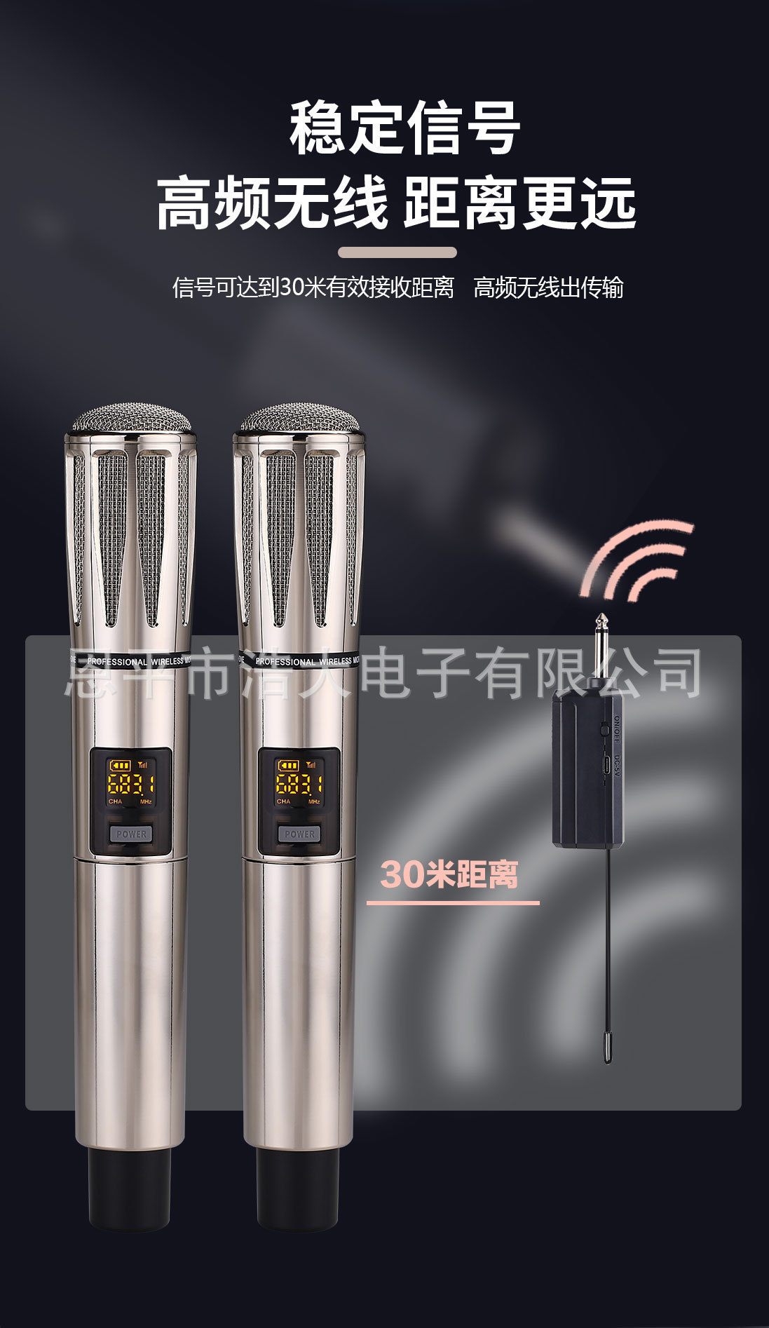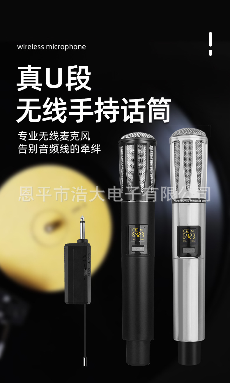 金属無線マイク屋外歌マイクk歌音響演出液晶表示UHF fm生放送家庭用