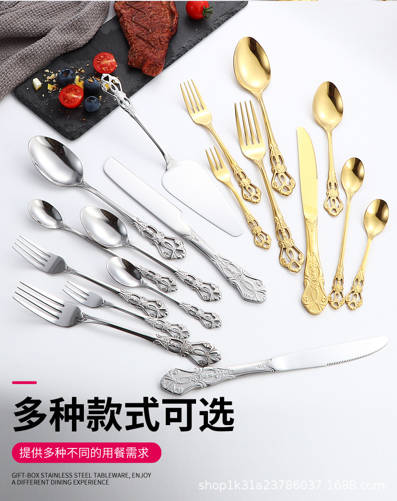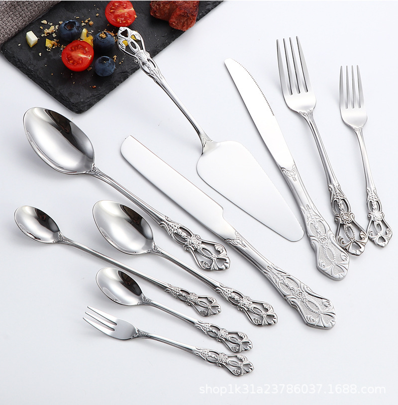 跨境不锈钢宫廷皇廷餐具套装西餐餐具酒店餐厅浮雕刀叉勺牛排刀叉