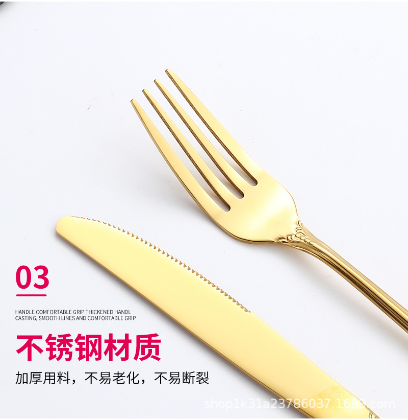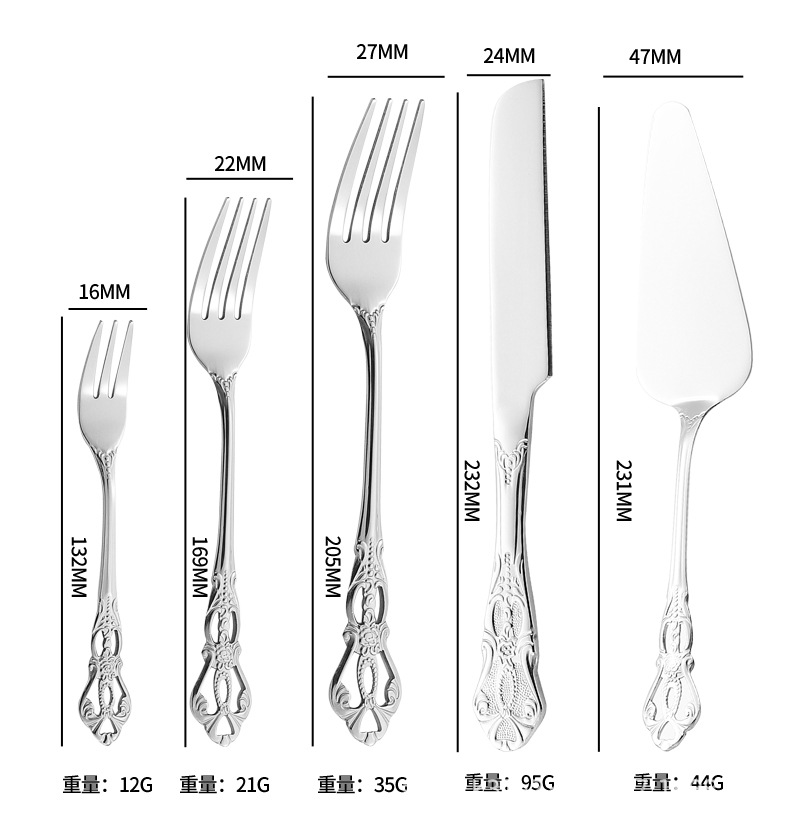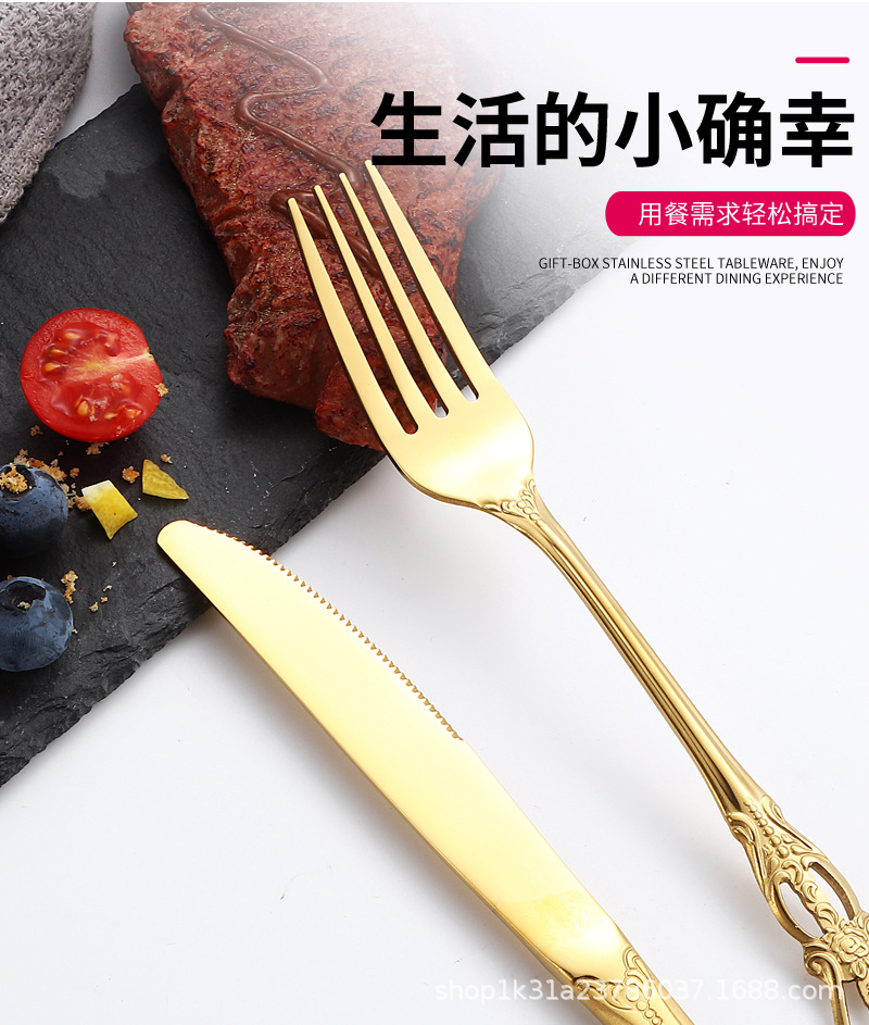 跨境410镂空浮雕不锈钢西式餐具皇庭刀叉套装筷子欧式牛排刀
