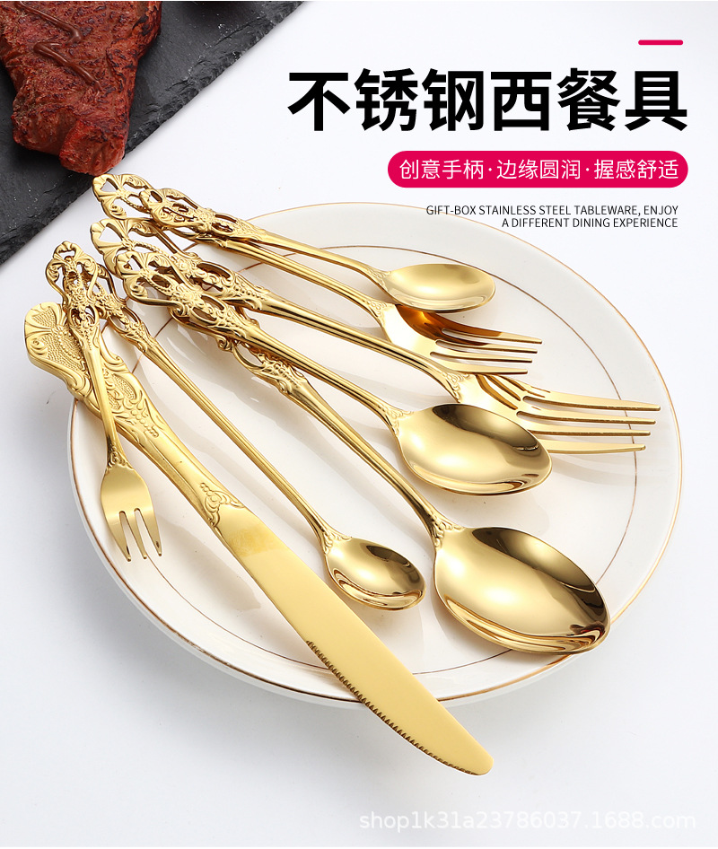 クロスボーダー皇庭レリーフステンレスナイフフォークスプーンホテル洋食食器セット攪拌スプーンコーヒースプーンステーキナイフ