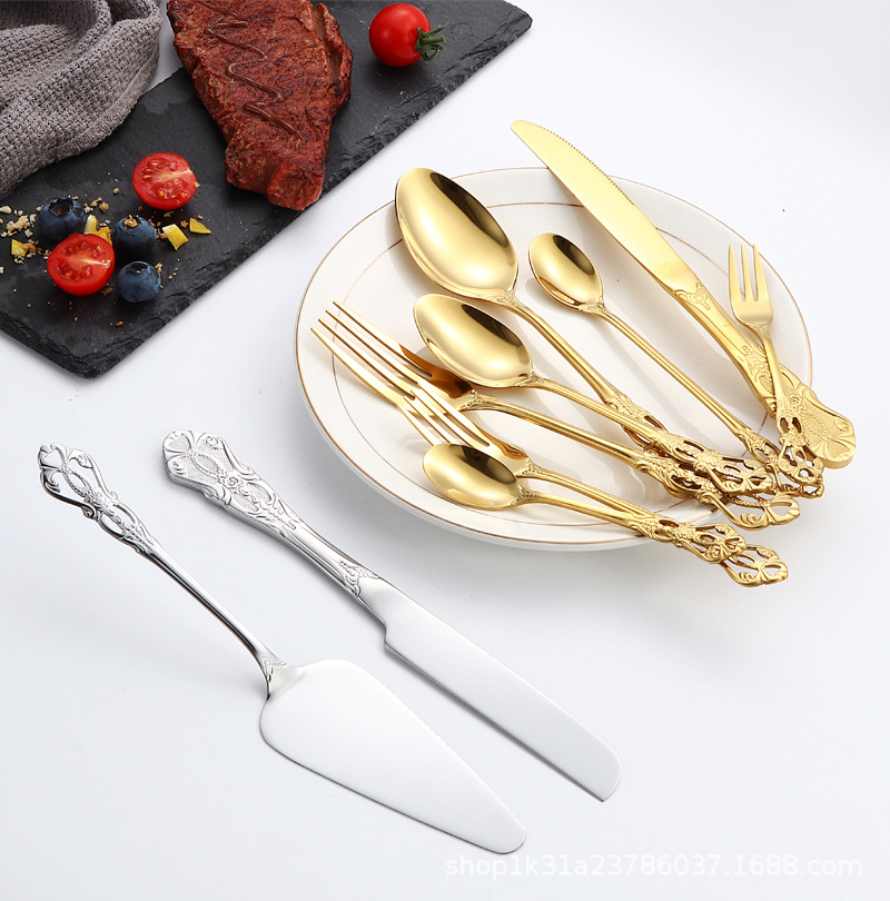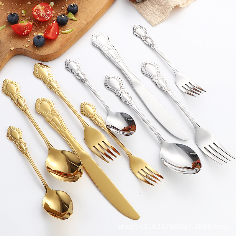 クロスボーダーロイヤルステンレス鋼ナイフ、フォーク、スプーンエンボス宮殿スタイル洋食器ホテル洋食レストランステーキナイフとフォーク卸売