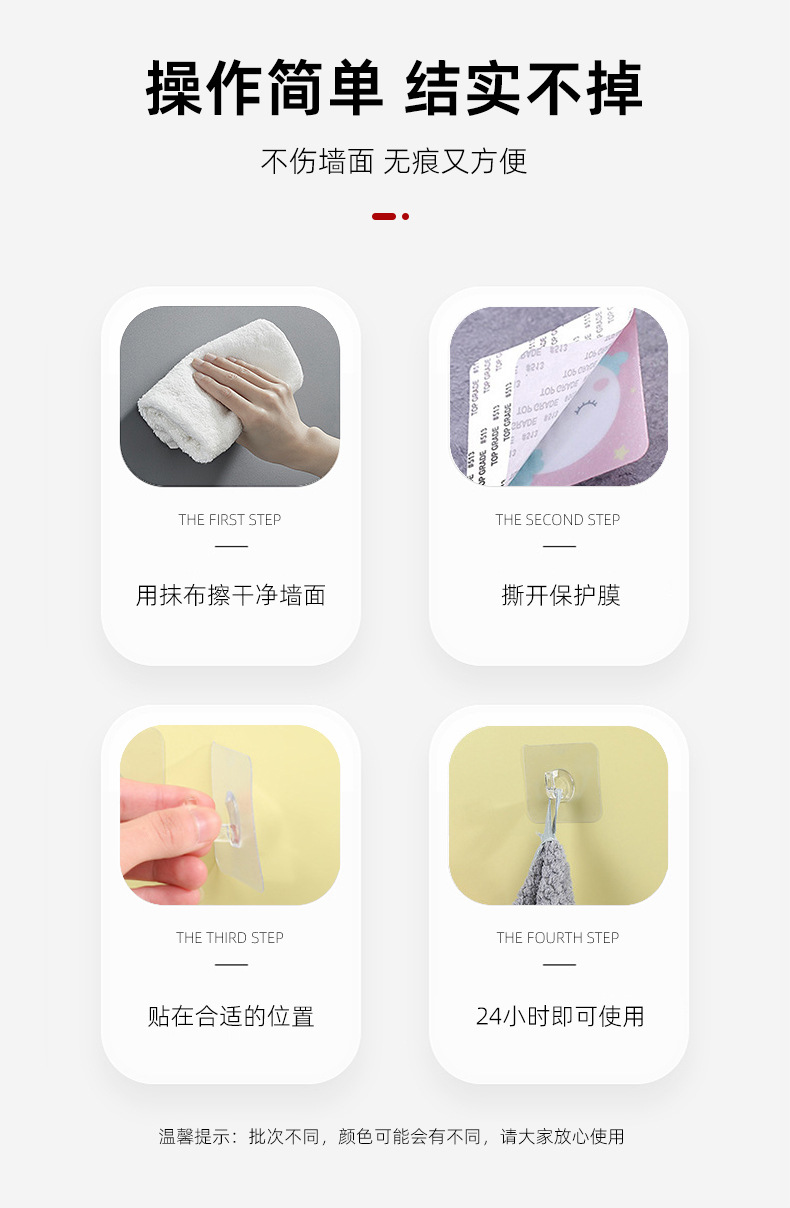 痕跡のないアクリル粘着テープ透明フック強力なプラスチック粘着フック浴室パンチフリー粘着カーフホーンフック