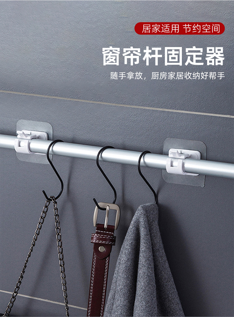 窗帘杆挂钩固定器免打孔粘贴式支架夹子横杆门帘晾衣杆伸缩杆粘钩
