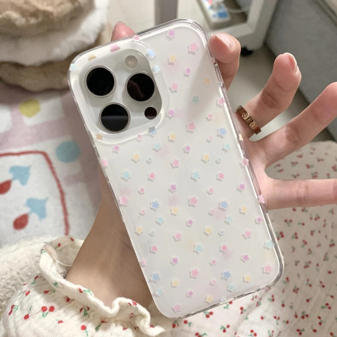 インスカラーの星柄iPhone17promax用スマホケース、Apple16promax対応、白底IMDケース、15ケース