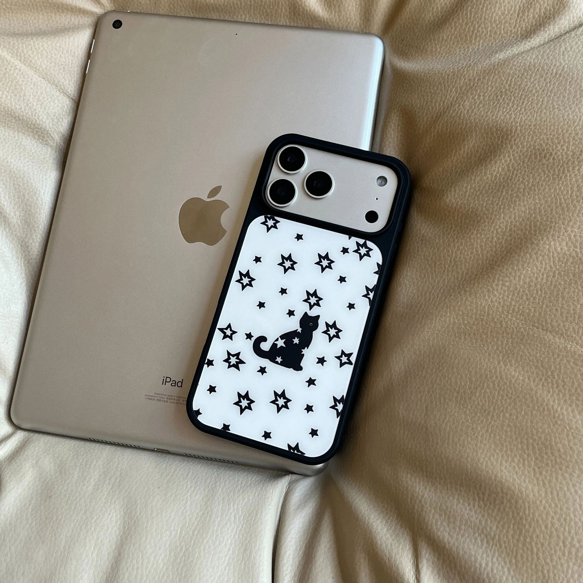 满屏星星黑猫适用苹果16/17Promax手机壳IP15磨砂PC女14/13大孔12