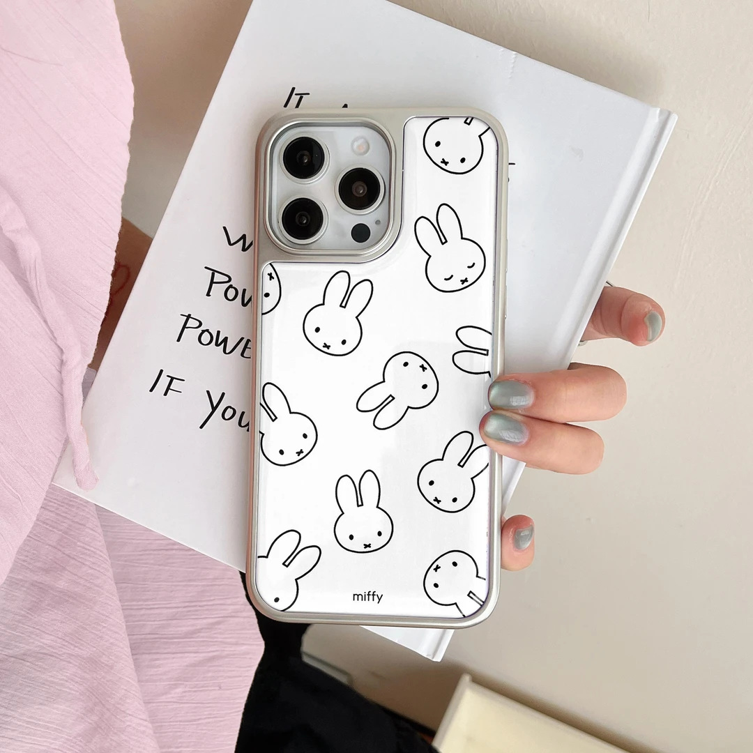 シンプルなミッフィーのウサギの頭の絵柄が可愛い、Apple iPhone17/16pro/14/13/15対応のスマホケース(水性樹脂/電気メッキ)