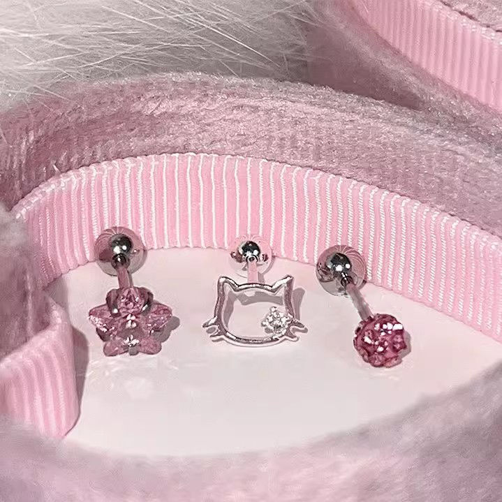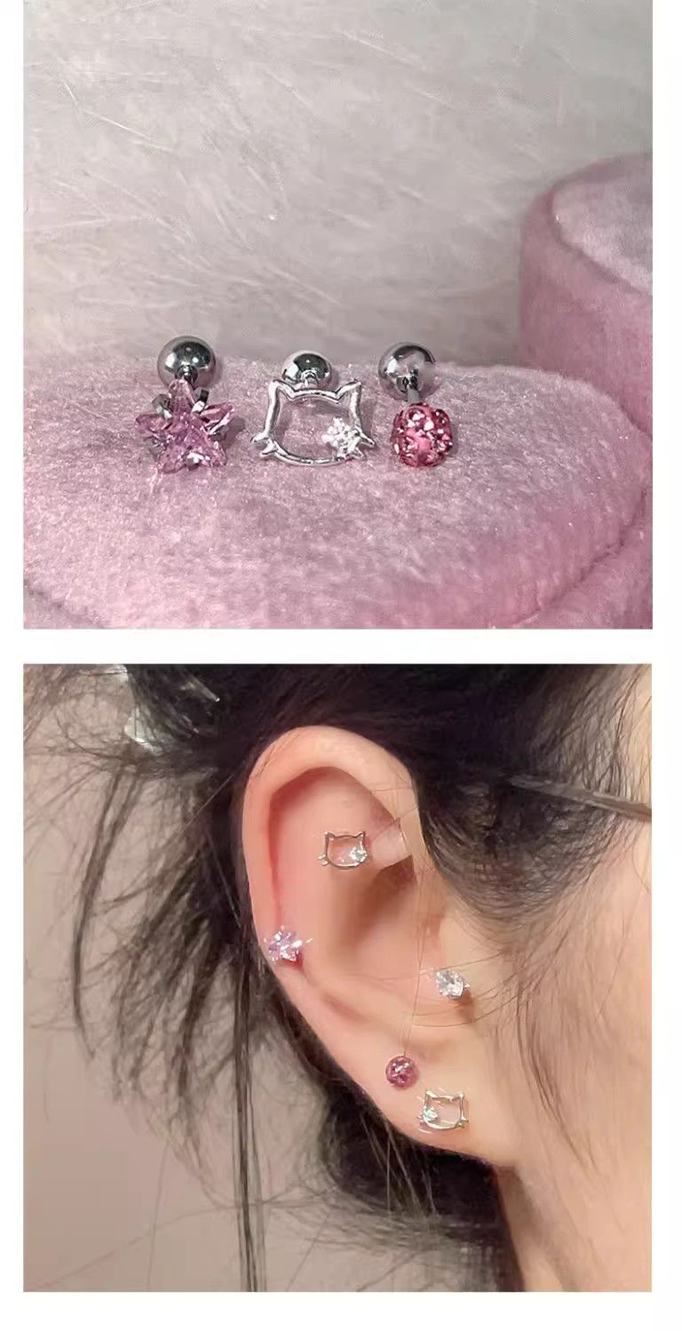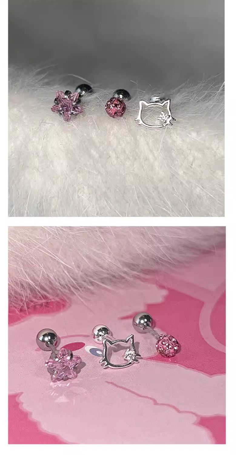 透かし彫り猫の耳の骨釘ピンクの小さい星の耳のウォーム釘チタン鋼の超フラッシュねじのピアス