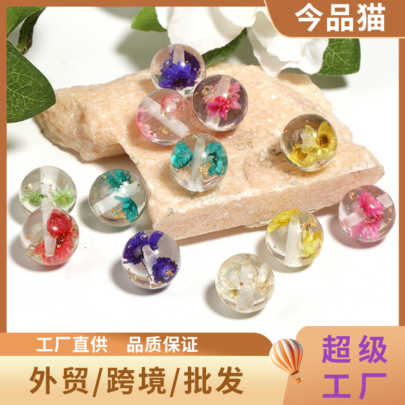 クロスボーダー現金ストレートホールカラードライフラワービーズファッション樹脂ラウンドビーズ手作り DIY 携帯電話チェーンネックレスルースビーズ