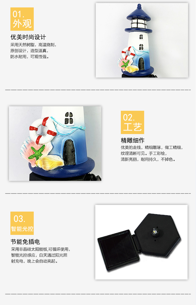 クロスボーダー热い贩売ソーラーライト海上灯台屋外庭ガーデンライト逸品装饰树脂屋外ナイトライト