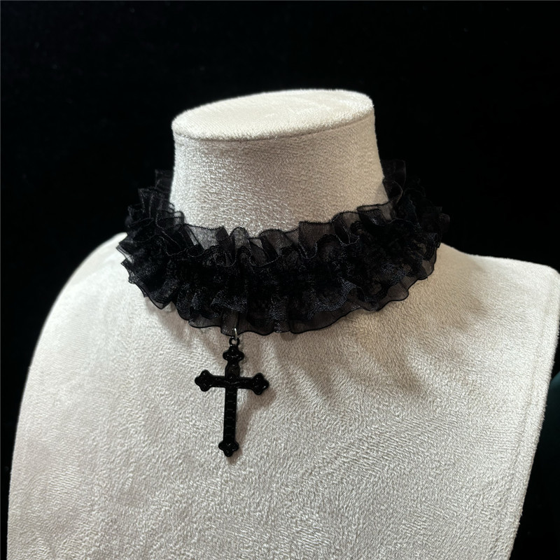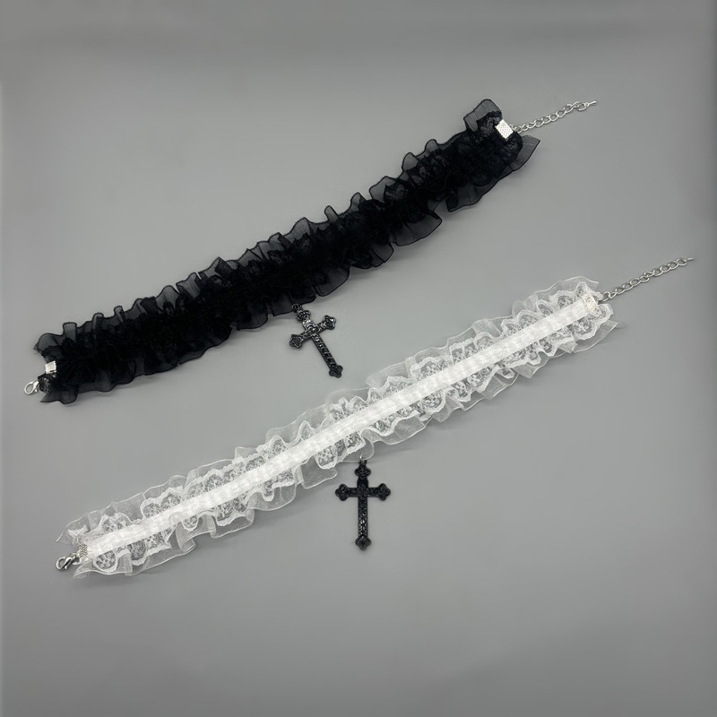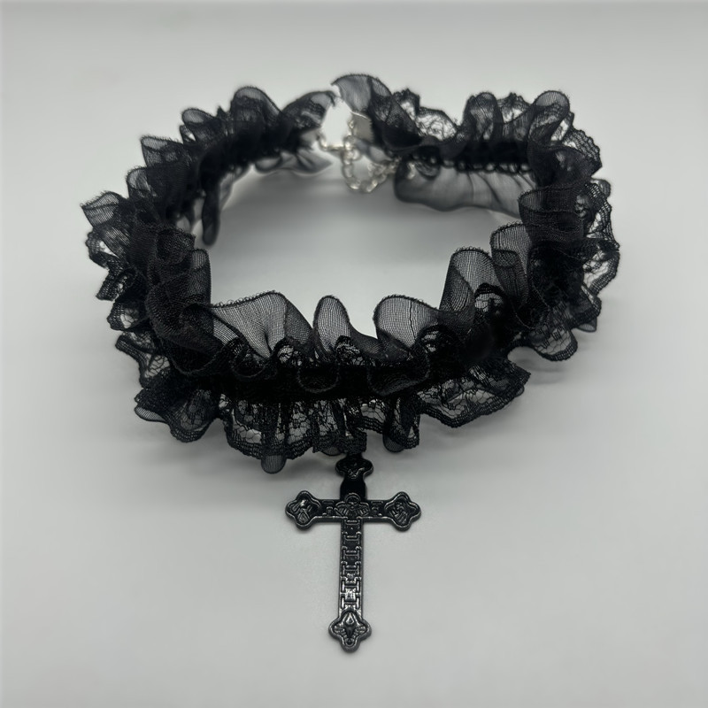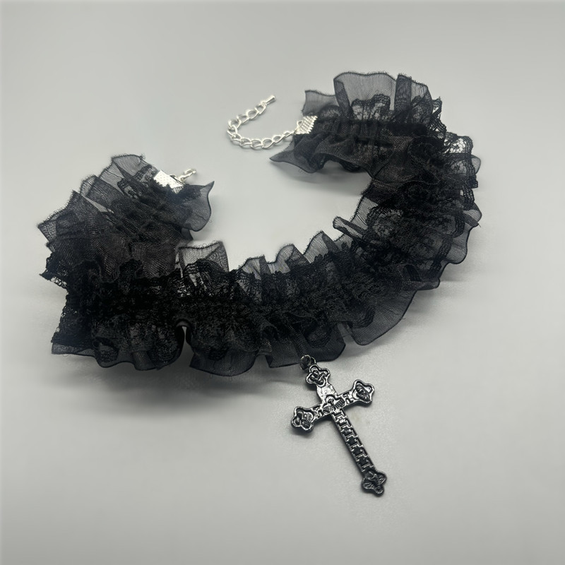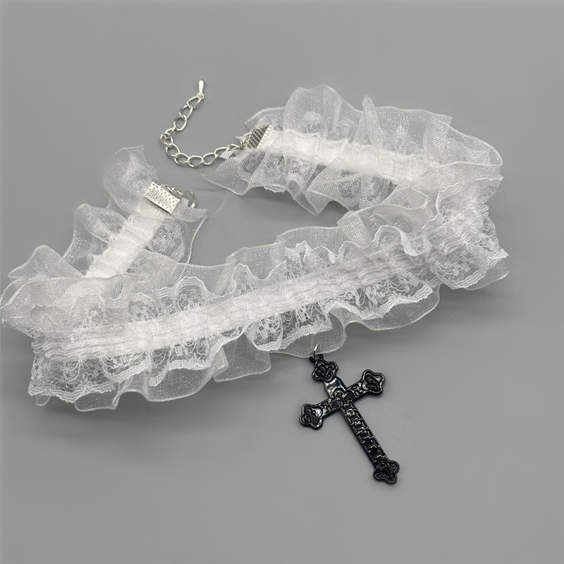 简约y2k十字架蕾丝项圈甜酷个性小众辣妹choker项链配饰哥特颈环