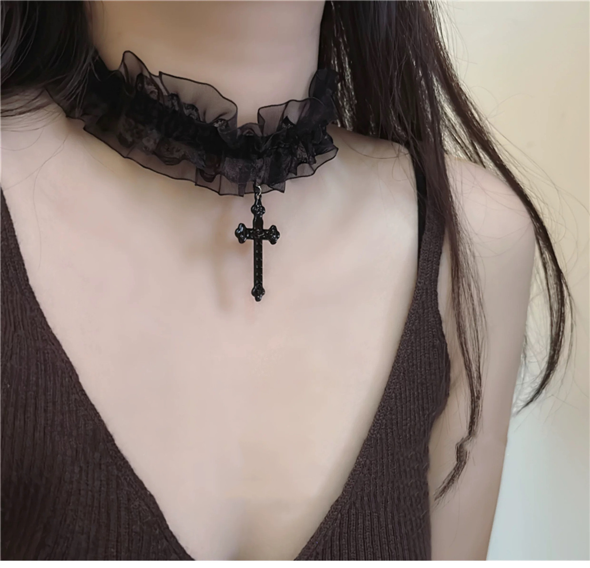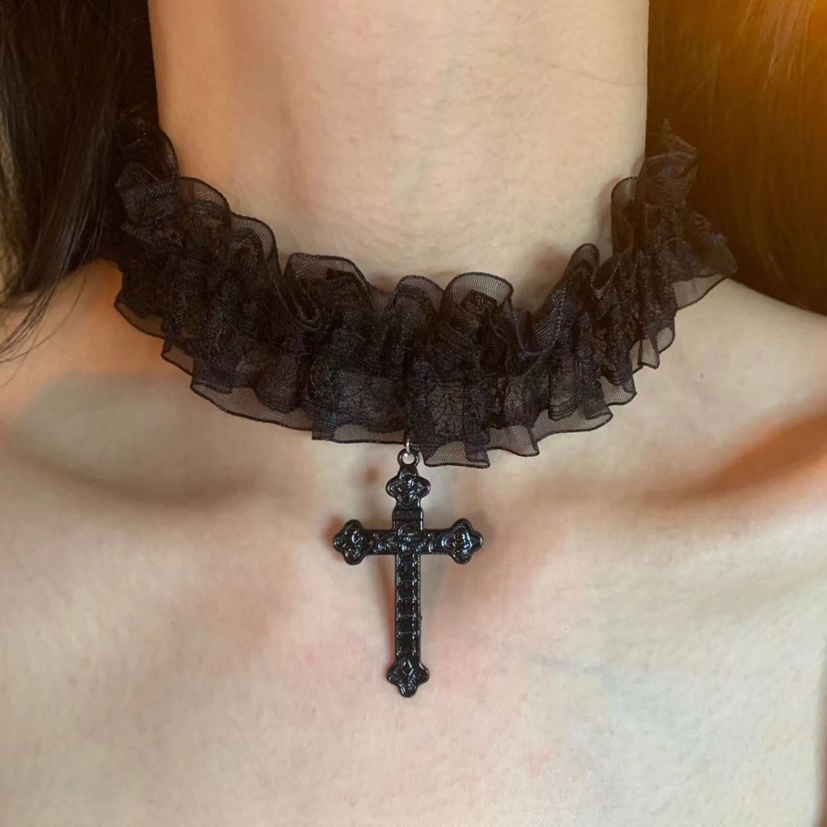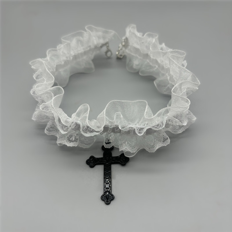 简约y2k十字架蕾丝项圈甜酷个性小众辣妹choker项链配饰哥特颈环