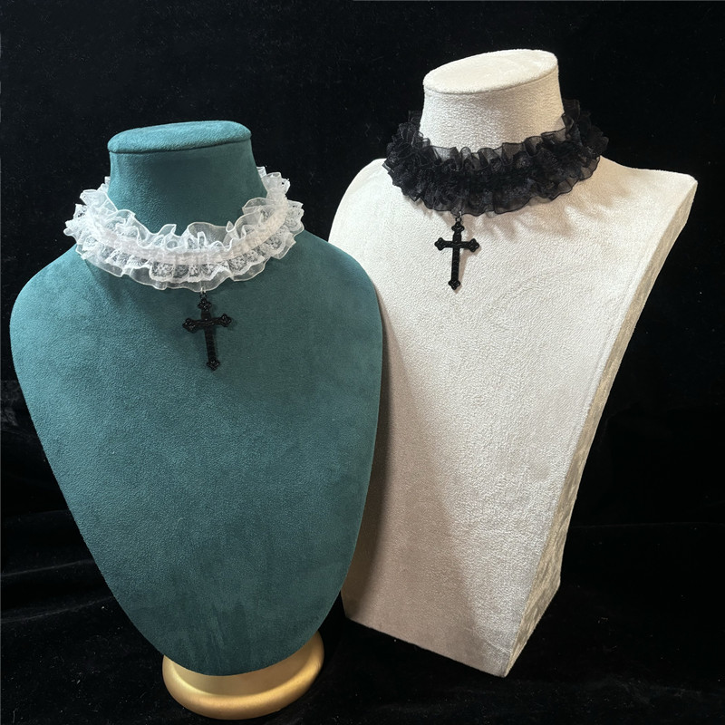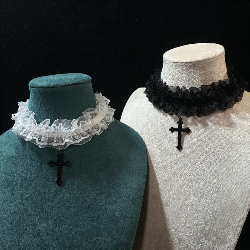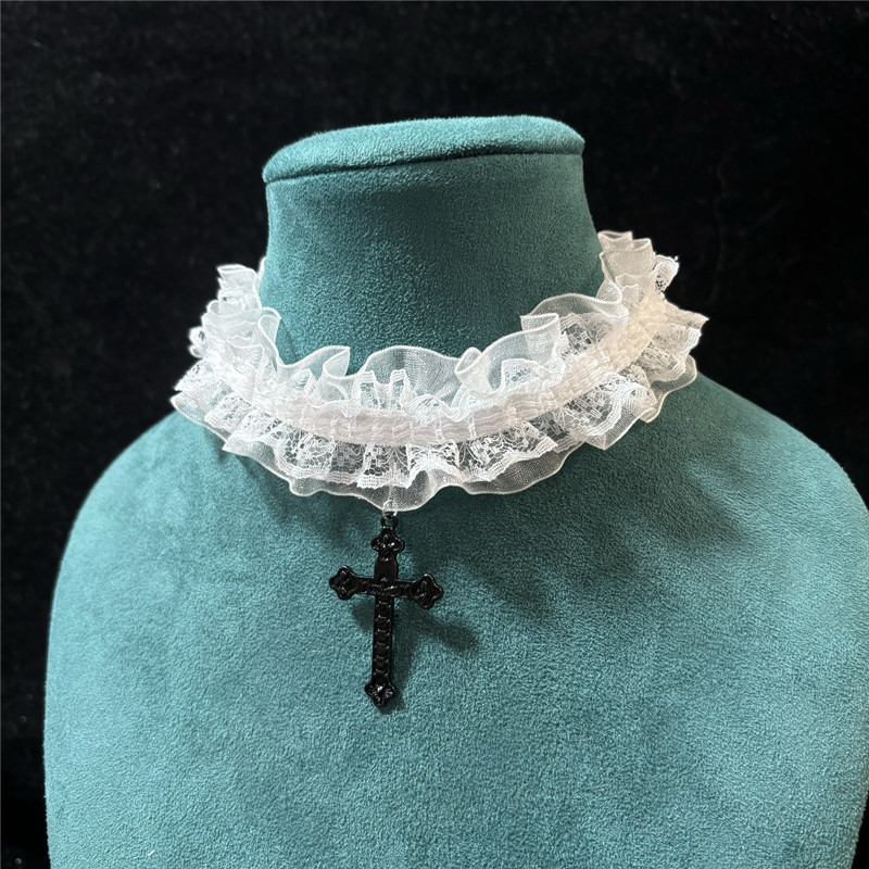 二重レースクロス首輪チョーカー首アクセサリーゴシックスタイル白黒2色