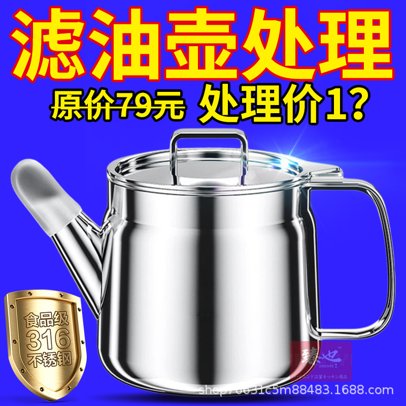 家用储油壶过滤油渣油罐304不锈钢酱油壶长嘴油壶带滤网可加印log