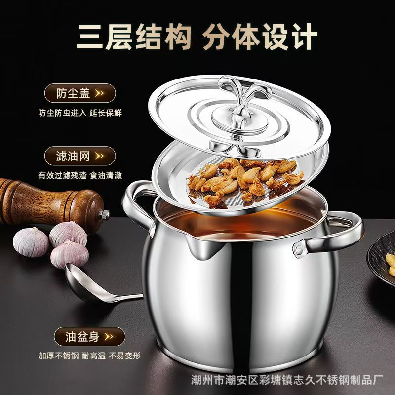 304ステンレス豚油盆家庭用キッチン食品級油調味料缶手提げ豚油鍋フィルターポット蓋付き