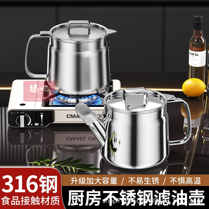 316L ステンレス鋼フィルターオイルポット、蓋とハンドル付き厚みのあるラードポット、深めの揚げパン、家庭用卵打ちポット、オイルタンク