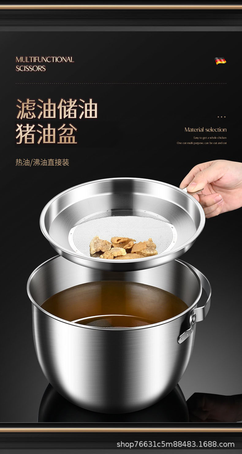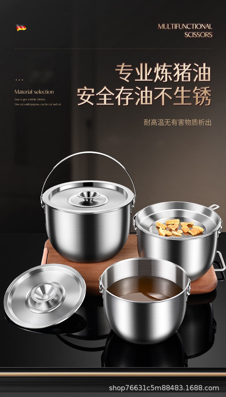 304ステンレス製オイルフィルター鍋家庭用多機能貯蔵鍋に豚油盆フライヤーを入れて油かす豚油タンクを濾過する