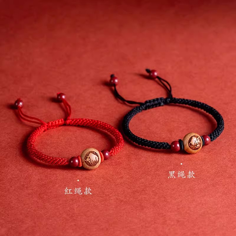 桃木红绳手链十二生肖手绳编织绳朱砂红绳手链本命年女款