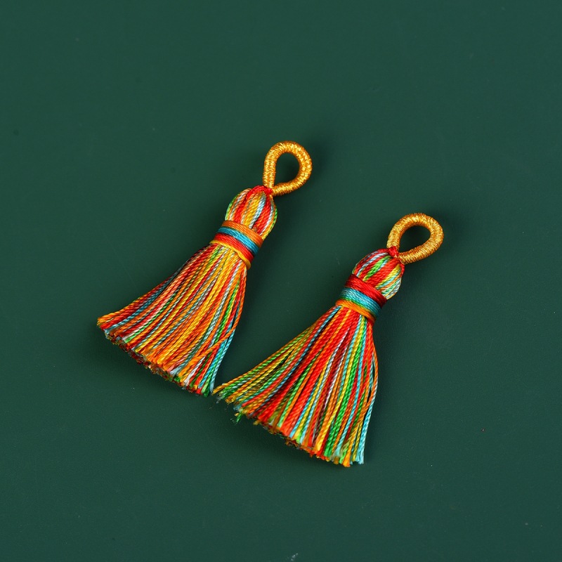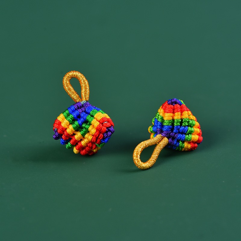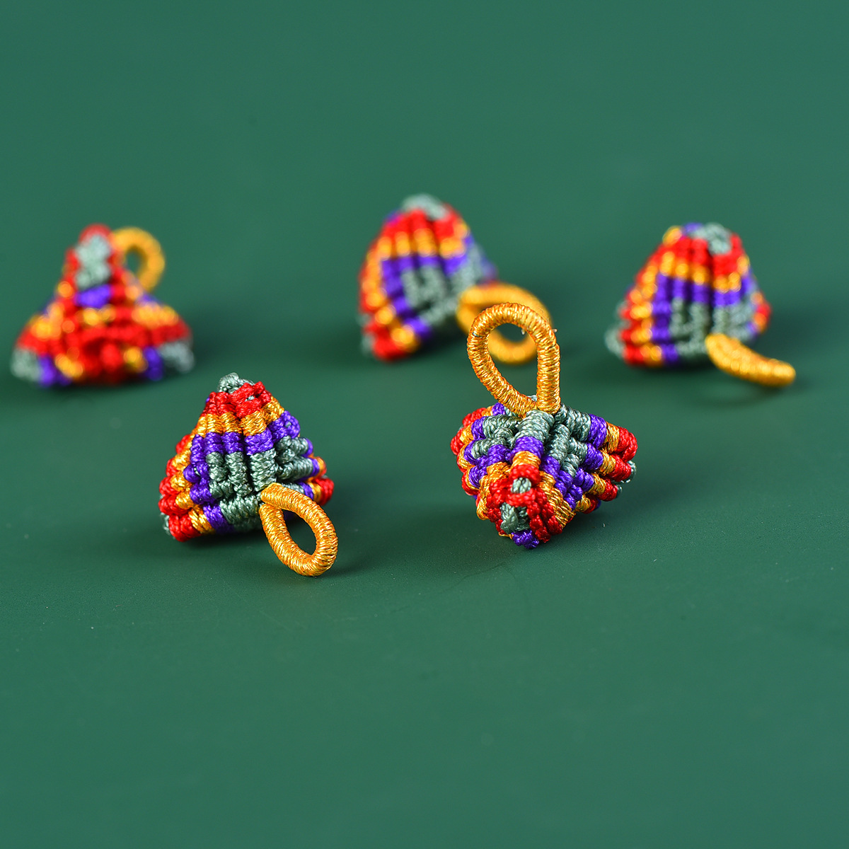 端午の五色のひもに飾られた手作りのちまきの柿のフリンジペンダント