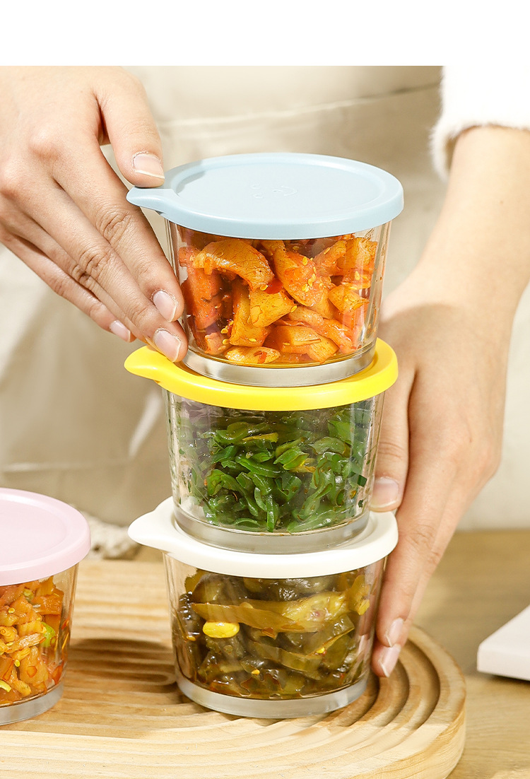 ガラス碗食品級ミニガラス鮮度保持箱携帯ミニキムチ小鉢卸売り密封漬け物缶蓋付き