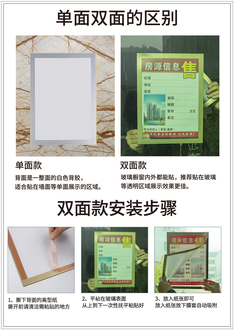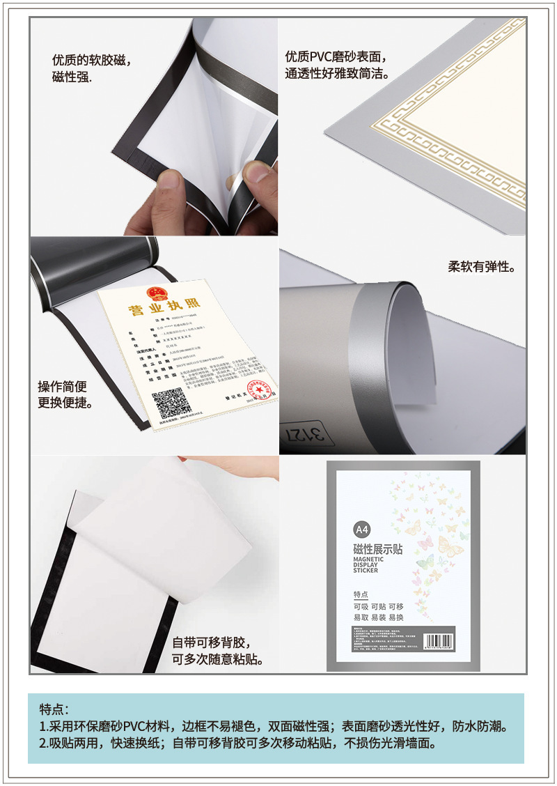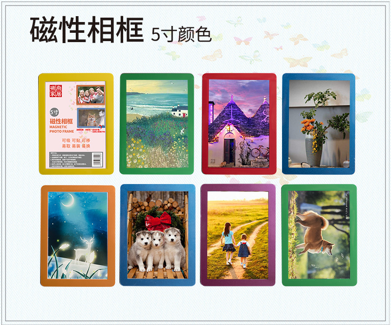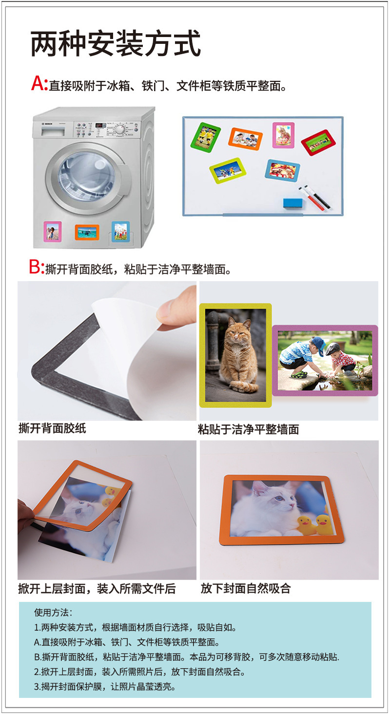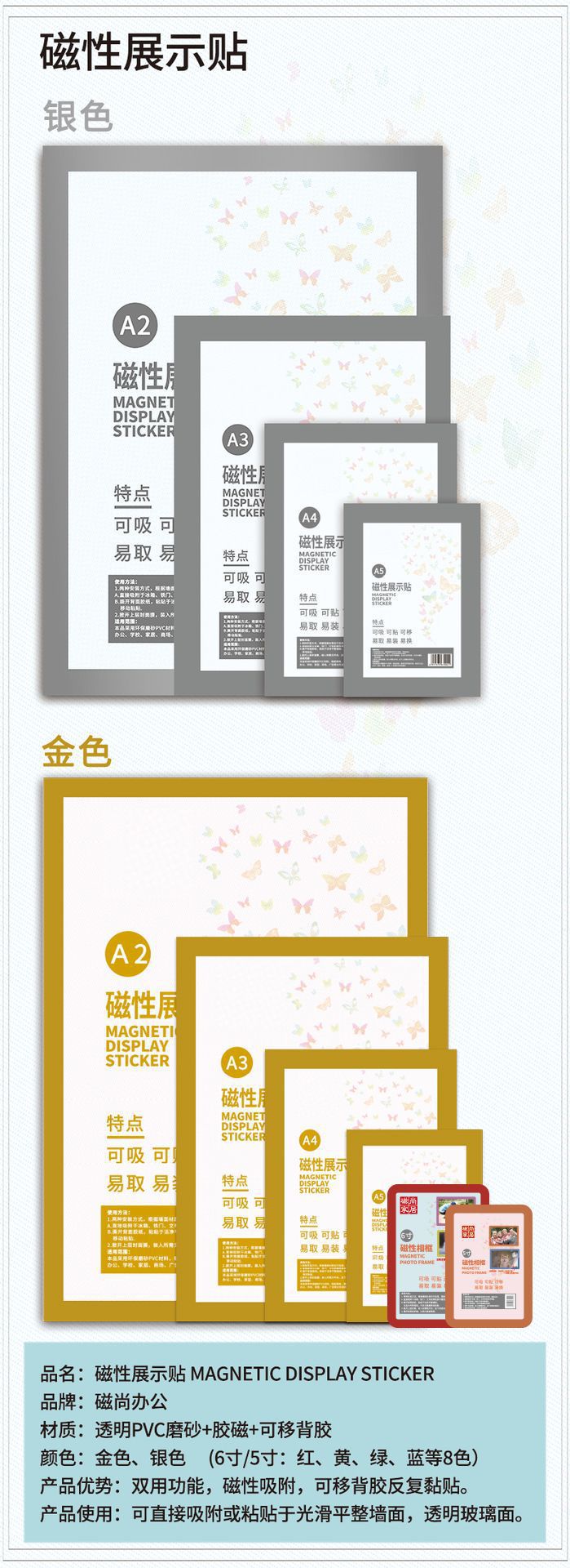 工場直送 磁気フォトフレーム ディスプレイステッカー シンプル 冷蔵庫マグネット 穴あけ不要 磁気A5フォトフレーム カードホルダー カスタム