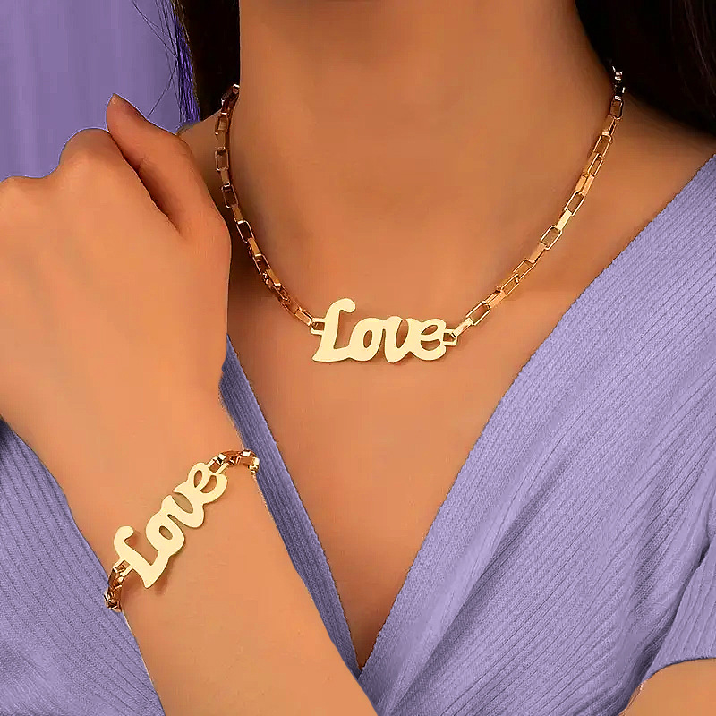欧米の越境ファッションの太いチェーンはヒップホップの個性の潮流を誇張して透かし彫りのアルファベットのLOVE金属のブレスレットの男女を彫ります。