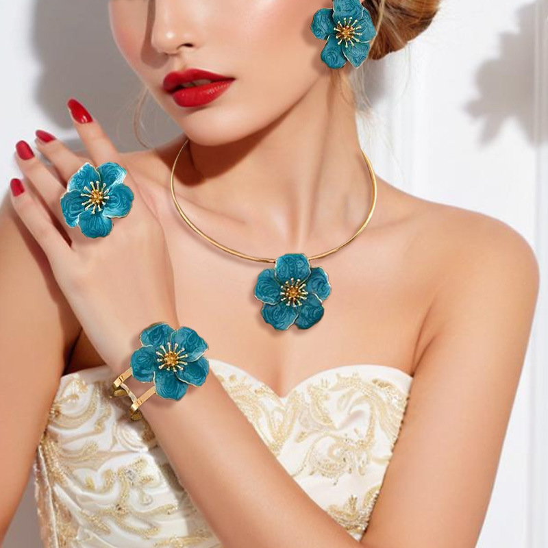 欧米国境を越えたアクセサリーins風金属立体花女気質五葉花アクセサリーセット5点セット
