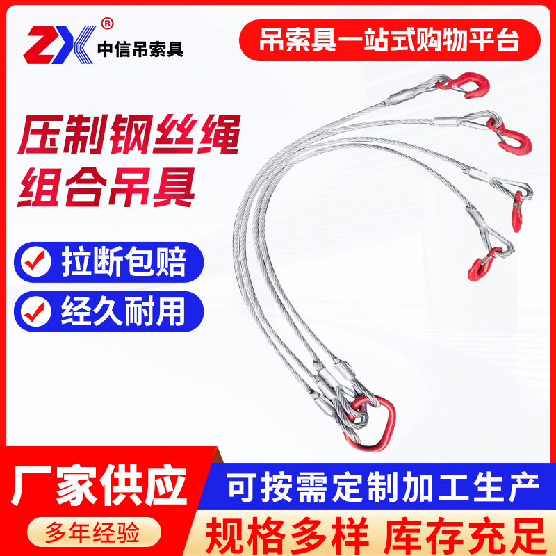 鋼ケーブル、ワイヤーロープスプレッダー、三叉四脚編み込みワイヤーロープセット、ロープ、運搬用吊り索