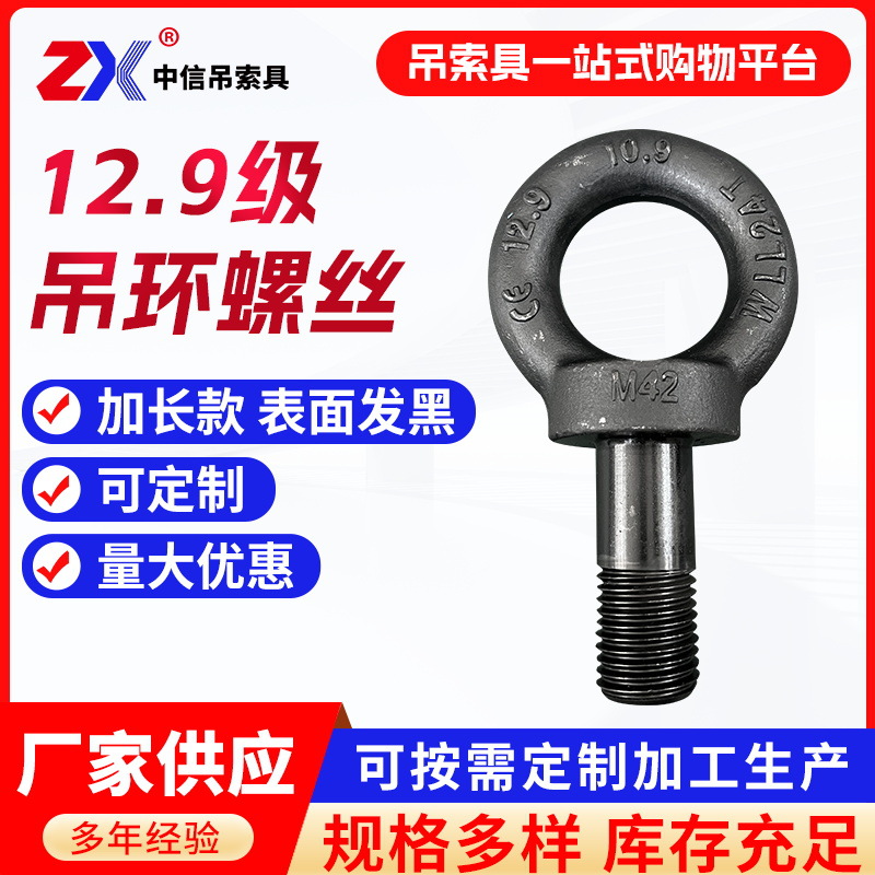 グレード 12.9 高強度リフティングリングネジ黒染め金型リフティングマリンリフティングリングボルト M16 延長リフティングリングネジ