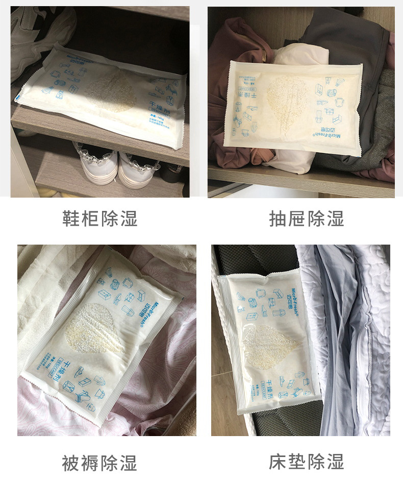 特別オファー日常使用メーカー卸売家庭用衣類除湿バッグ乾燥剤ワードローブ寝室寮防湿剤除湿バッグ