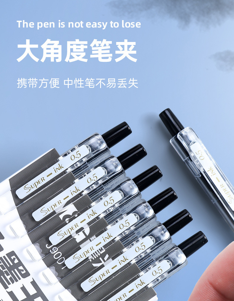 有力s08押し中性ペン黒順滑0.5黒ペン押圧式学生用事務サインペン