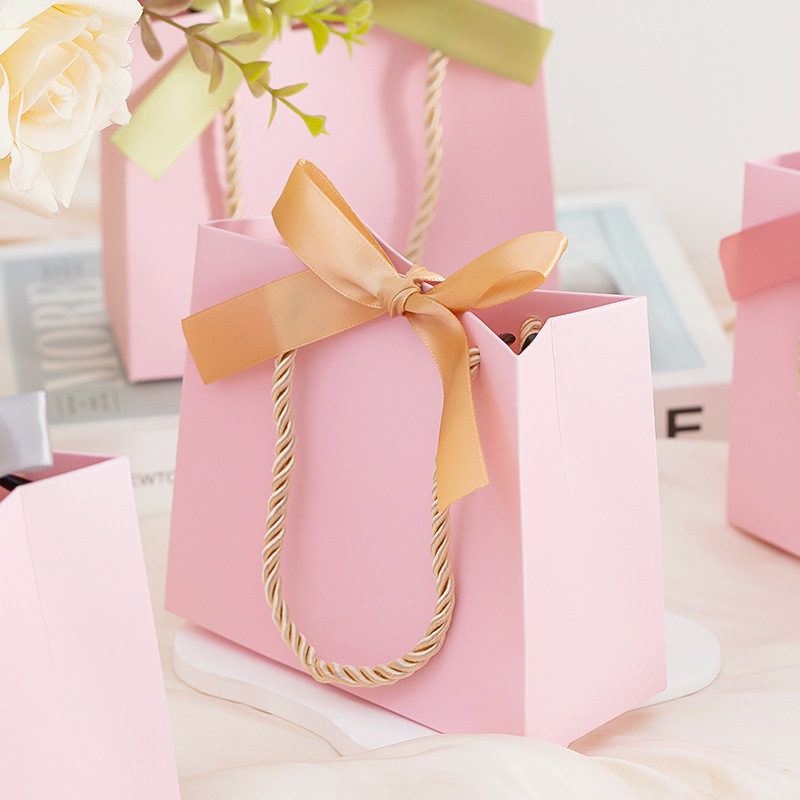 2025 空白紙ギフトバッグ DIY パーティーホワイトピンク小さなギフトハンドバッグ