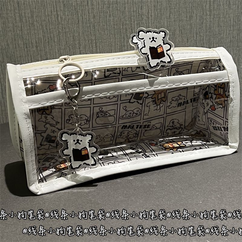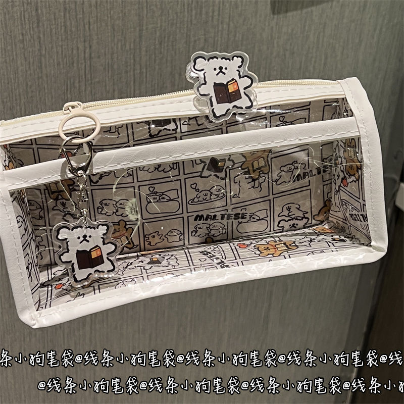 本海ライン子犬透明二重ペンバッグins高颜値少女心学生大容量収纳文房具バッグ