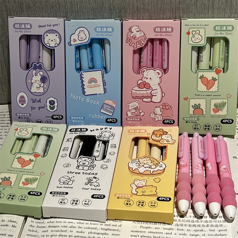 ハニーベアのペンダント綿筆ins風高颜値押し式黒速乾ブラシ問題筆少女心0.5筆