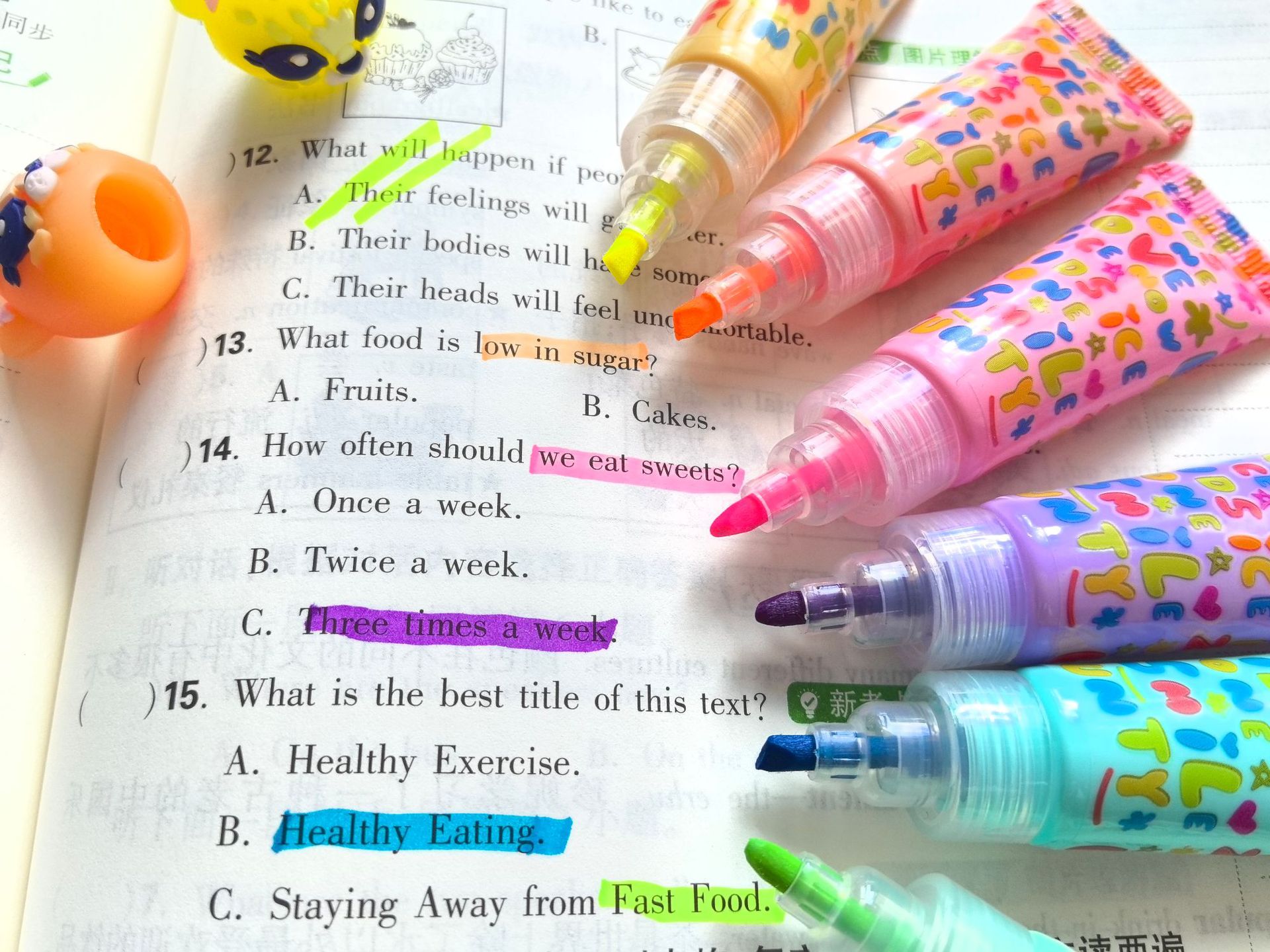 新作学生カラーグラデーション蛍光ペンセット目保護色重点マーク絵画ノート4色斜めペン