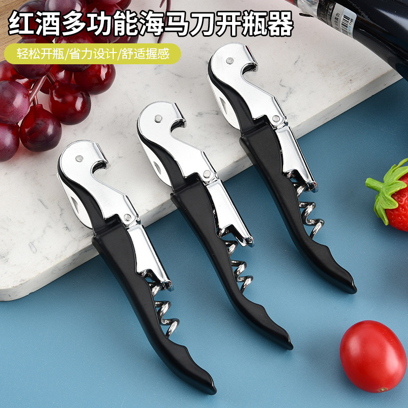 多功能海马刀折叠红酒开瓶器家用葡萄酒割纸刀啤酒启瓶器跨境热销