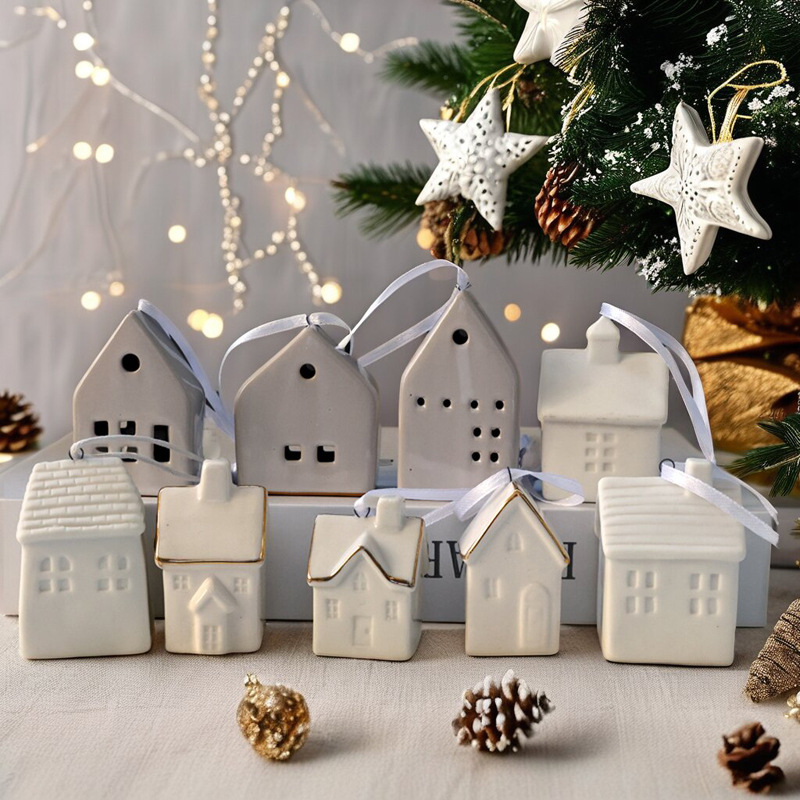 陶瓷圣诞小房子镂空创意电镀金色圣诞树装饰品小挂件圣诞节日用品