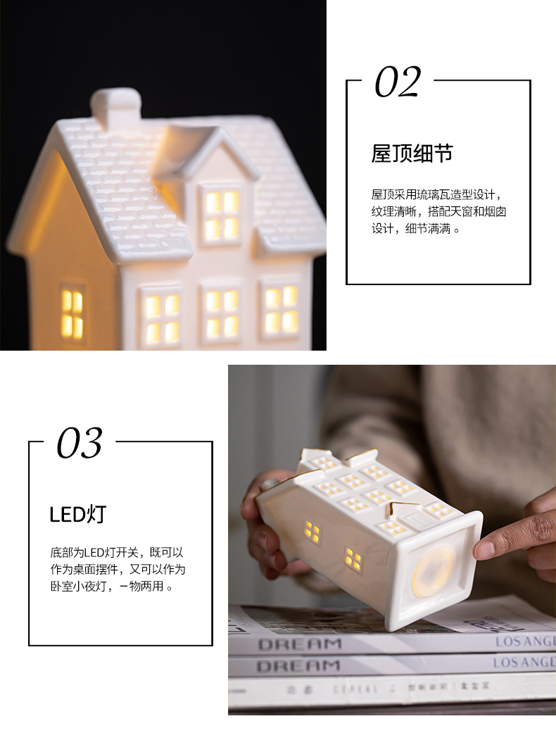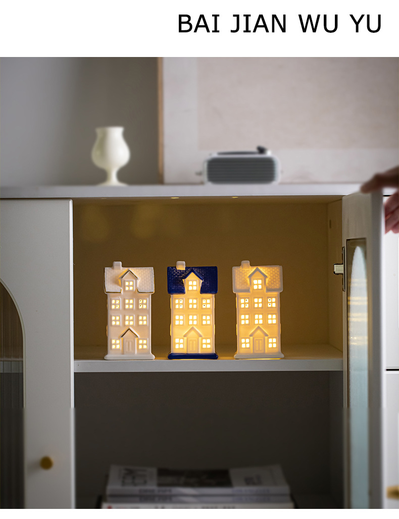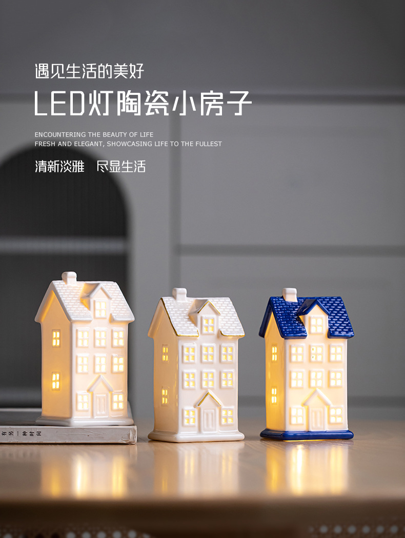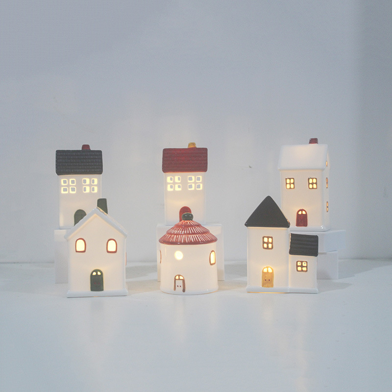 クロスボーダー LED セラミック小さな家クリスマス装飾夜の光デスクトップ装飾品工芸品写真雰囲気小道具