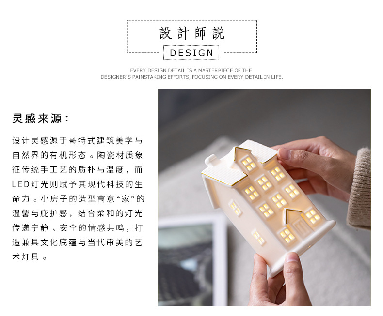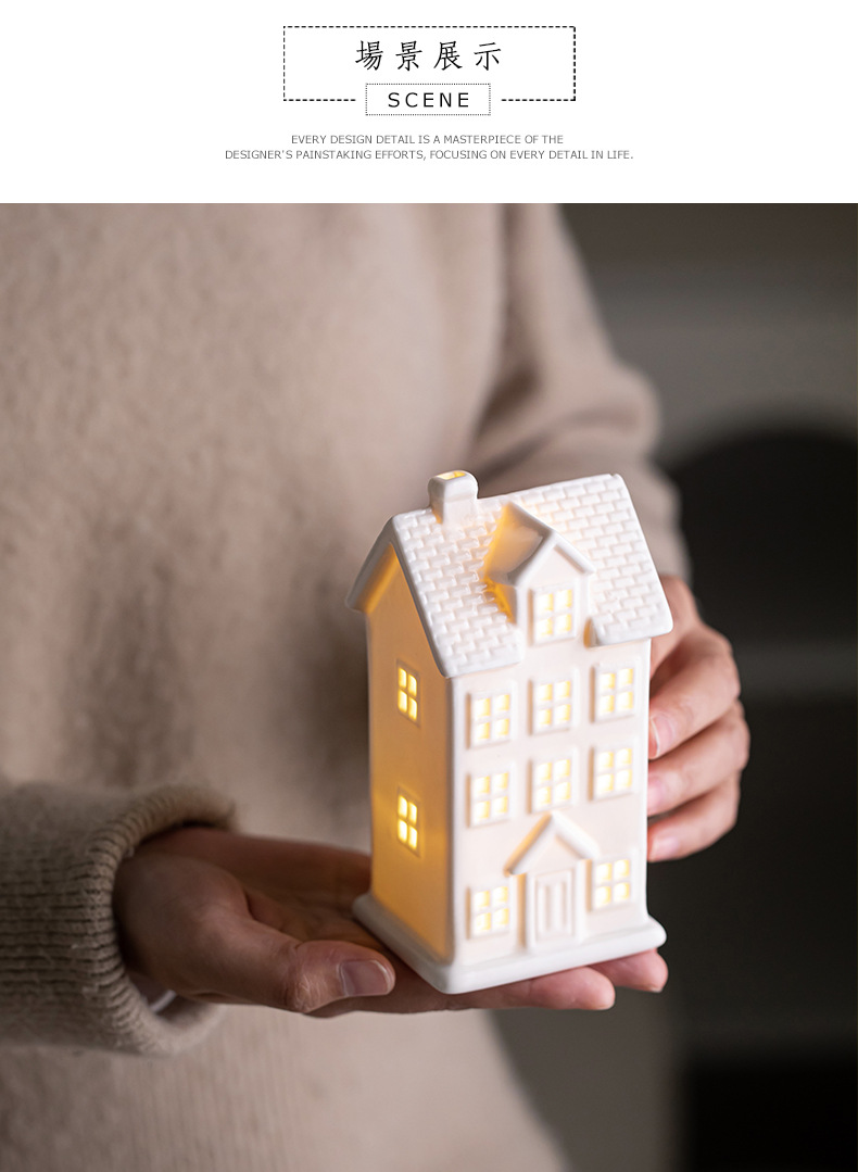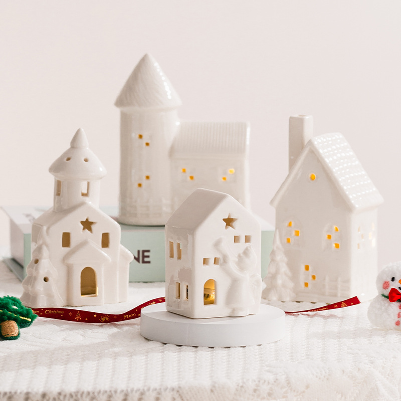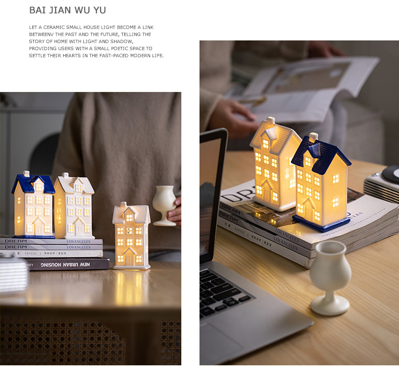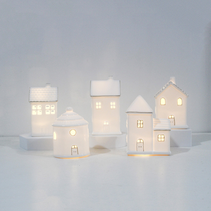 クロスボーダー LED セラミック小さな家クリスマス装飾夜の光デスクトップ装飾品工芸品写真雰囲気小道具