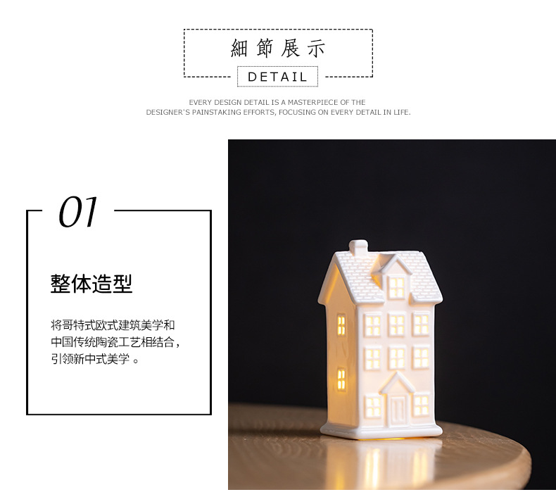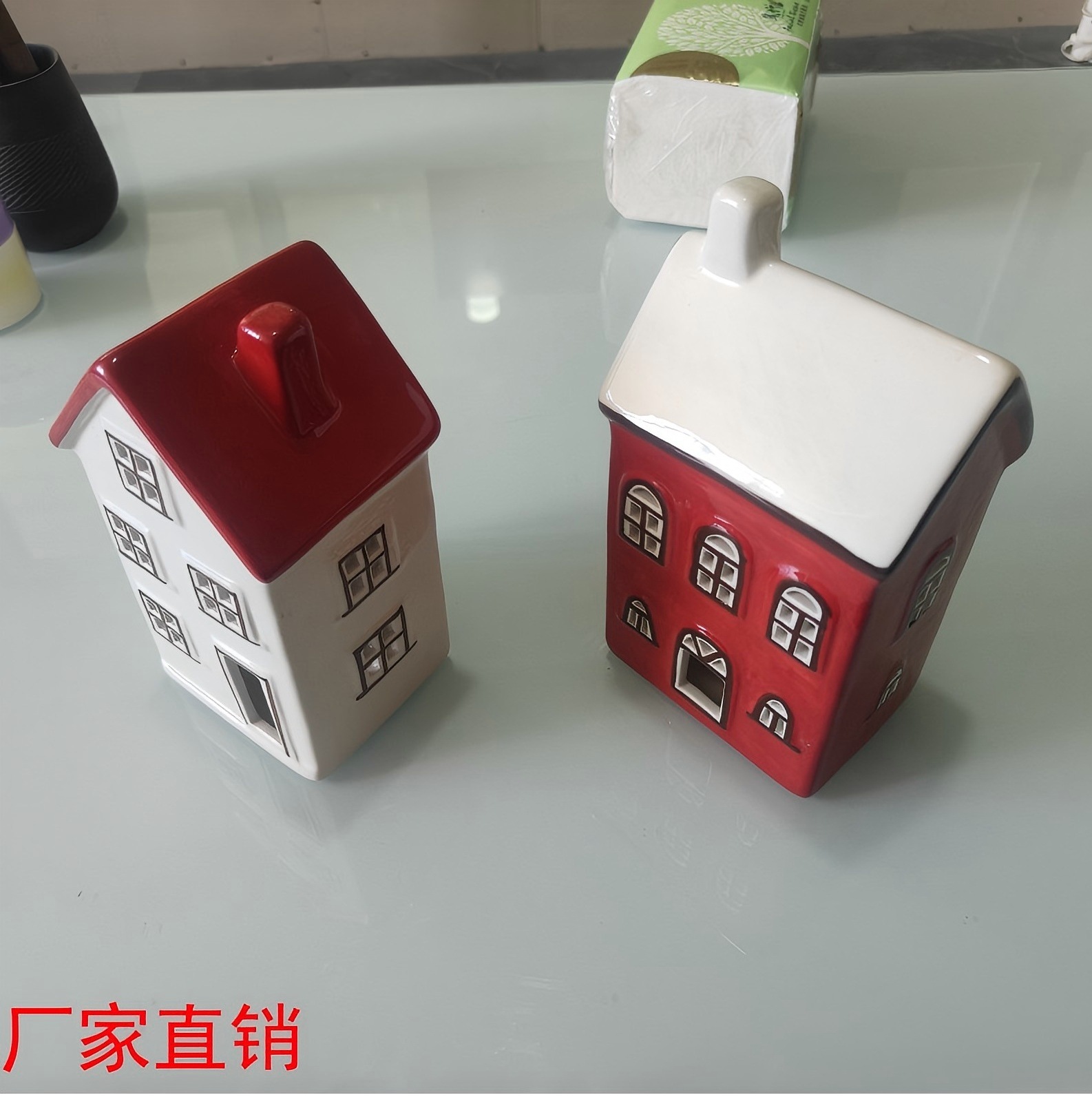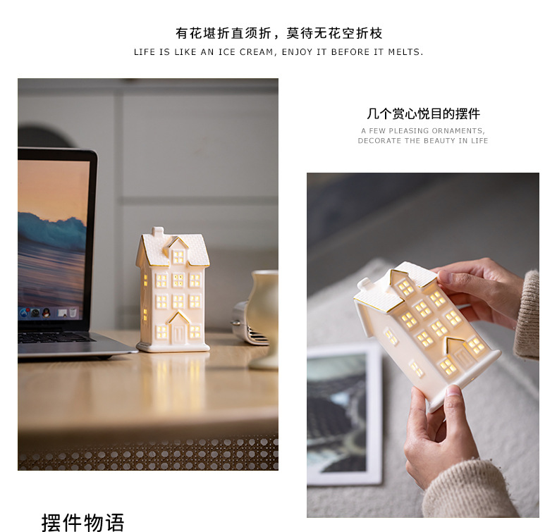 简约陶瓷镂空房子LED灯工艺品新款欧式摆件创意圣诞节装饰品批发