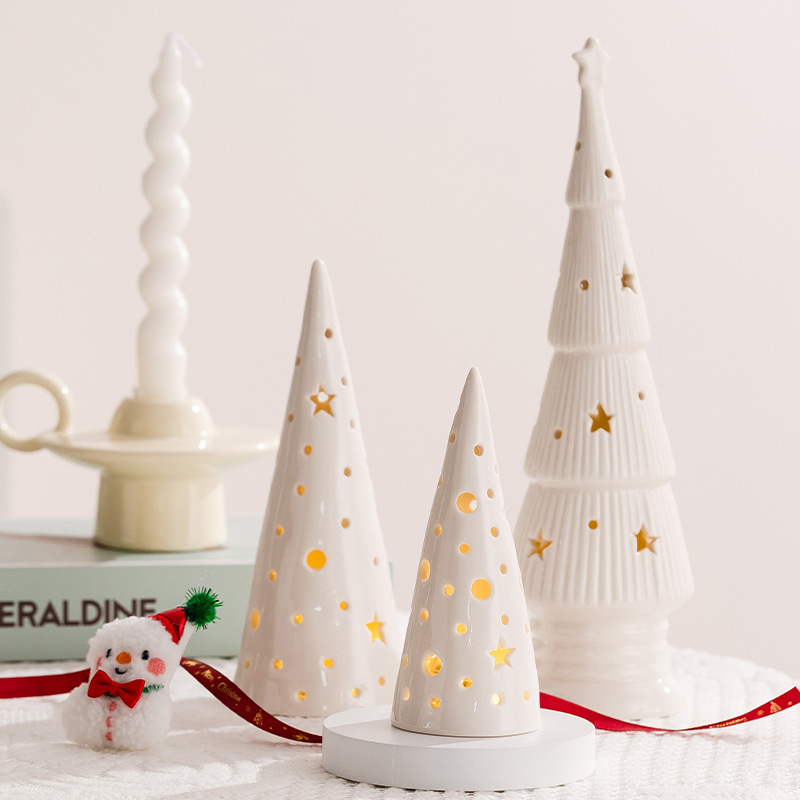 クリスマスツリー現代家庭白色陶磁器クリスマスツリーLED装飾輸出祝日プレゼント中温陶磁器置物