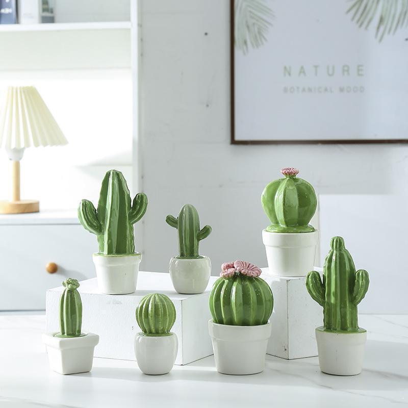 客間現代の軽豪華なヨーロッパ式の家庭装飾陶磁器の組み合わせ田園風のデスクトップの鉢植えのサボテンのデスクトップの置物