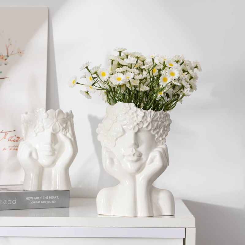 北欧ins风クリエイティブ人体芸术リビングテーブル水耕栽培生け花器高级感装饰セラミック花瓶置物