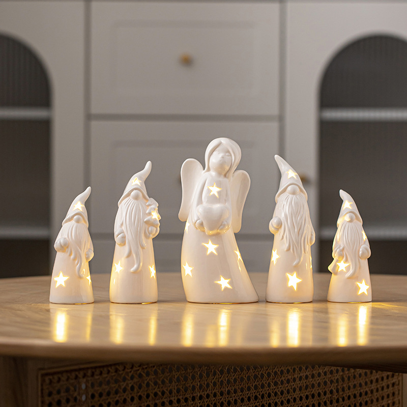 クロスボーダーLED天使セラミック置物北欧リビングルーム家庭装飾品サンタクロースデスクトップ燭台工芸品