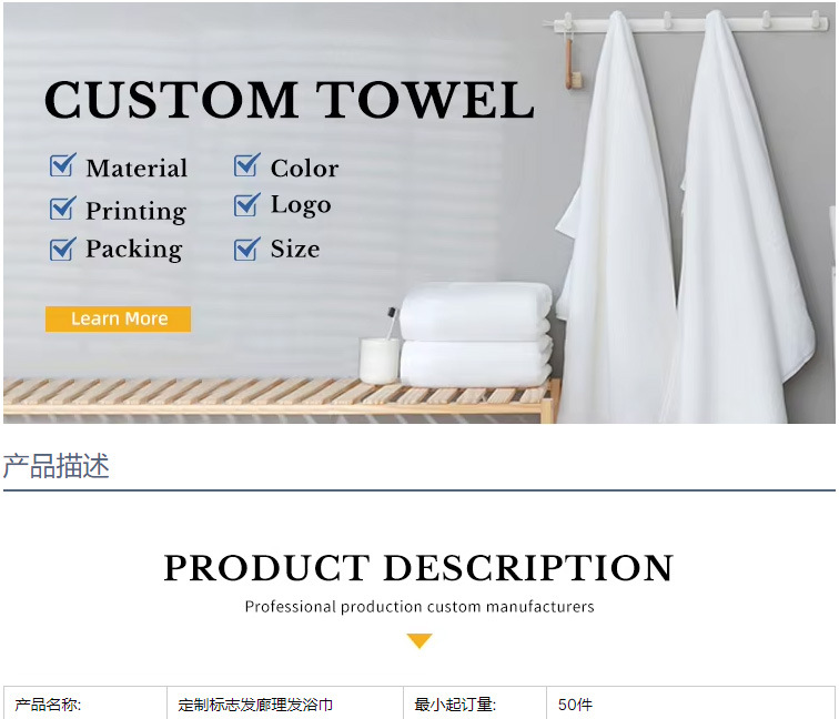 タオル卸売り極細繊維理髪店美容院日常用フェイスタオル厚手バスタオル刺繍ロゴ