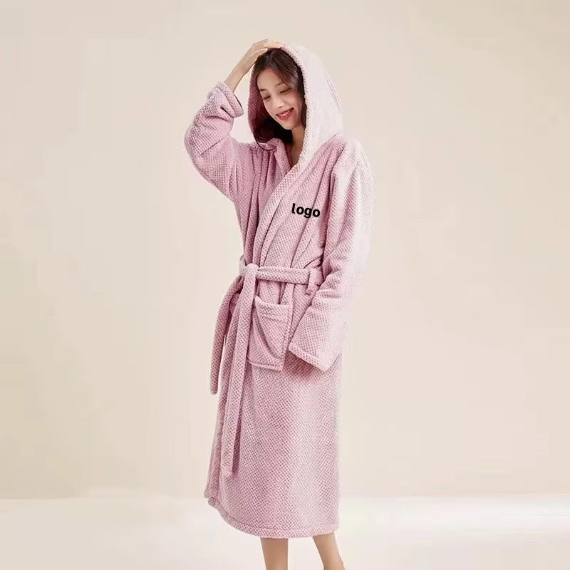 长袖浴袍吸水速干洗澡情侣睡袍长款浴衣浴巾秋冬男女加厚成人带帽