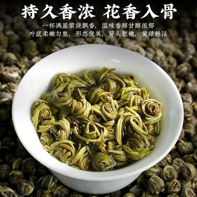 特級ジャスミン白翡翠カタツムリ 2024 新茶 ジャスミン茶翡翠カタツムリ王 風味濃厚 耐泡タイプ マルチ仕様袋 125g