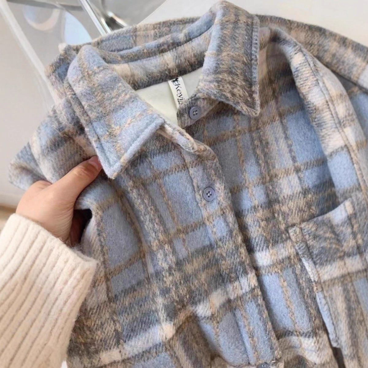 2025年秋冬新作 韓国風 レトロ風 ゆったり 大きめサイズ 厚手 起毛 長袖 チェック柄 シャツ レディース ウールコート