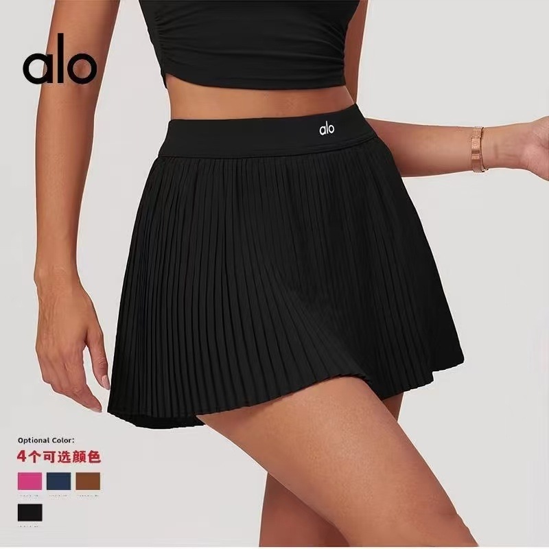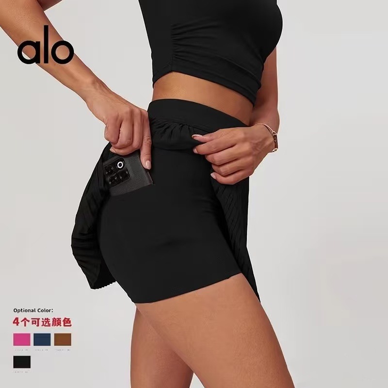 ALO ヨガショートスカート新しいプリーツスカート女性の夏の露出防止フィットネスランニングプロテニススカートポケット付き