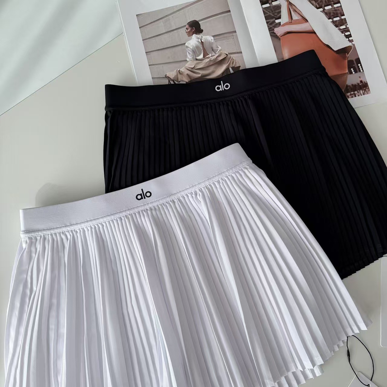 2025春夏新作Aloのテニススカートは、露出防止機能を備えたクラシックな2色のスポーツスカートです。