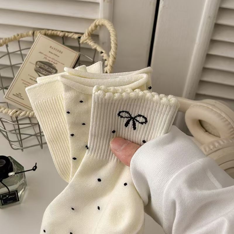 水玉模様のリボン、純綿の女性用靴下、諸曁靴下、純綿の靴下、監禁靴下、靴下の山、女性用春と秋の靴下、リボン靴下、バレエスタイルの靴下